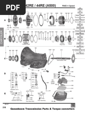 PDF 40RH / 42RH / 42RE / 44RE (A500) RWD 4 Speed Pump Body Stator 179 777 309 778 211 678P 305 674 305D Case 996 377 410 Intermediate Shaft 765 300 896 195 909 906 908 361 195 907 194 905 Kickdown Servo Accum. 910 Assy. 191 927 192 926 925 916-1 916-2 919 916-5 916-4 Kickdown Band Strut 916 B 964 974 877 149 108 126 146 564 Forward Clutch 878 232* 233* 894 881 234 050 592 238 582 238 Forward ...